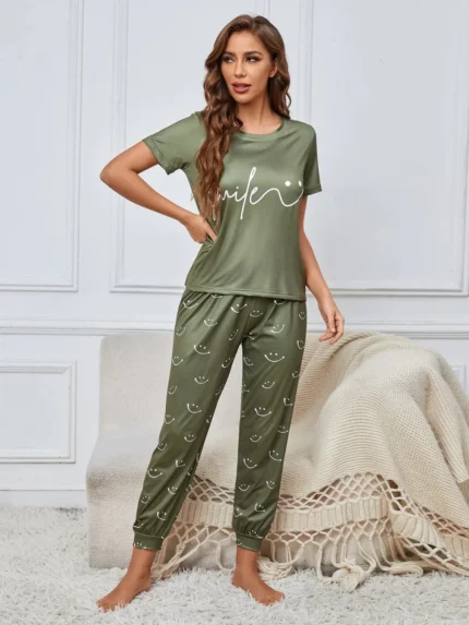 Yellow Flower Printed Trouser Night Wear