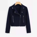 Cross Zipper Fleece Coat – Navy Blue