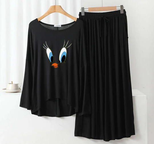 Be the first to review “Deep Black Daffy Duck Round Neck Plazzo PJ Set” Cancel reply