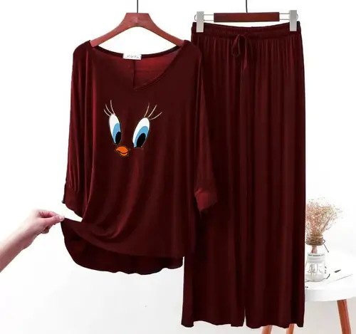 Be the first to review “Maroon Daffy Duck V-Neck Women Night Suit PJ Set” Cancel reply