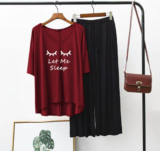 Be the first to review “Plain Red let me sleep V Neck T Shirt with Black Plazzo” Cancel reply