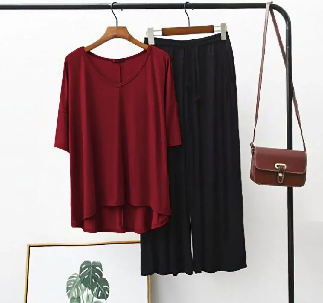 Home All Collection Plain Red V Neck T Shirt with Black Plazzo